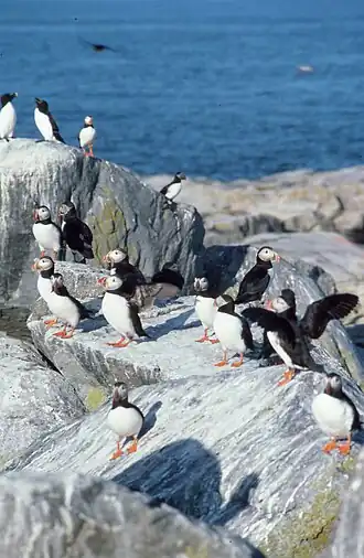 Seal Island National Wildlife Refuge is a 1-mile long (1.6 km) island off the coast of Maine, United States near Matinicus Island that is part of the Maine Coastal Islands National Wildlife Refuge. During any given summer season, over 100 species of birds are observed by researchers on the island. It is home to colonies of many types of seabirds, including Atlantic puffins, double-crested cormorants, razorbills, Leach's storm petrels, eiders, and black guillemots. Seal Island is the last refuge for the dwindling great cormorant population in the Gulf of Maine, with 35 pairs in 2018. A policy of eliminating predatory gulls preceded the recolonization of the island by a large mixed band of Arctic terns and common terns.
