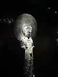 The forerunner of the Shandong Museum, the Yidu Museum, was established by the British Baptist missionary John Sutherland Whitewright in Qingzhou in 1887. The museum moved to Jinan in 1904 and was renamed to Guangzhi Yuan. In 1942, the museum expanded to a building in the compound of the Red Swastika Society on Shangxin Street.[1] When the Shandong Provincial Museum (Chinese: 山东省博物馆; pinyin: Shāndōng Shěng Bówùguǎn) was founded in 1954, its collection of historical artifacts occupied the compound of the Red Swastika Society, whereas the Guangzhi Yuan housed its natural history collection. In August 1991, construction on a new building for the museum started in the south of Jinan, at the intersection of Li Shan Road and Jing Shiyi Road, near the Thousand Buddha Hill.[1] The building was completed in October 1992,[1] its street address is: Number 14 Jing Shiyi Road, Lixia District, Jinan. In December 2007, ground was broken for a new, significantly larger museum located on Yaojia Street in the Lixia District to the southeast of Jinan's city center.[1] This new museum building was opened to the public on November 16, 2010.[1] The official name of the new museum was shortened from "Shandong Provincial Museum" to "Shandong Museum".