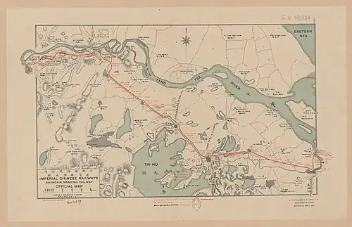 Such a railway had long been desired by Western interests in 19th-century China and just as long opposed by the Qing government. Following China's disastrous failure in the First Sino-Japanese War, however, the Guangxu Emperor approved the construction of the Shanghai–Nanjing line[2] as a western extension of the existing Songhu Railway. The project was undertaken by the civil engineering partnership Sir John Wolfe-Barry and Lt Col Arthur John Barry at the end of the nineteenth century.[3] Its former eastern terminus at the Old North Station in Shanghai's Zhabei District (the former American district of the International Settlement) is now the Shanghai Railway Museum.