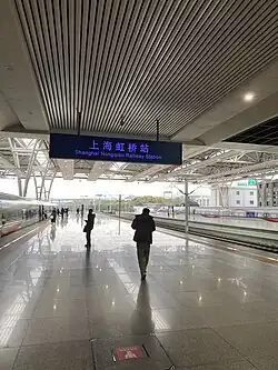 The station primarily serves as the Shanghai terminus of several high-speed rail lines, including the Shanghai–Nanjing intercity railway, the Shanghai–Hangzhou high-speed railway (the first section of the Shanghai–Kunming high-speed railway), and the Beijing–Shanghai high-speed railway. As of 2015, all trains departing from Shanghai Hongqiao belong to the G and D classes (interprovincial high-speed services).[3]