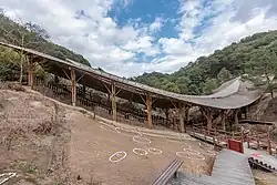 Fengming mountain is located in the town of Fenghui, about 4 km (2.5 mi) far from town center. Scenic area is about 2.4 square kilometers, the “overhanging rocks and waterfall” and “one-thousand-year-old vine” are most popular and shocked landscapes. In addition, Taoist literatures named here are “the ninth great holy land” because alchemy ancestor and the Taoist patriarch Wei Boyang was born and concocted pills of immortality in this mountain, finally write down the book “Zhou yi shen tong qi”, which has great and unique contribution to the study of ancient chemistry and health science.[8]