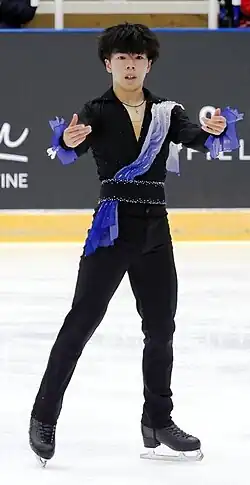 In March, at the 2025 World Championships in Boston, he successfully landed a quadruple Lutz in the short program and placed fifth in that segment.[60][61] In the free skate, he landed another quad Lutz, then received an edge call on a quadruple flip jump and had a fall on a quadruple toe loop. With no other major mistakes, he finished in sixth place overall. He said afterward, "I'm sighing with relief. For the past month, I've really been practicing like my life depended on it, so I'm glad that effort paid off. I think my performance dispelled my regrets from failing at the All-Japan Championships."[62]