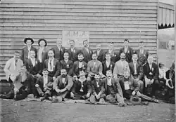 Miners of the Shuttleton Branch of the Amalgamated Miners' Association, date uncertain. (Photo, Kirkham's Studio, Collection of Mitchell Library, State Library of NSW)