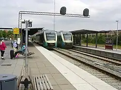 Silkeborg station (Danish: Silkeborg Station or Danish: Silkeborg Banegård) is a railway station serving the town of Silkeborg in Central Jutland, Denmark.[1][2] It is located in the centre of the town, on the southern edge of the historic town centre, and immediately adjacent to the Silkeborg bus station.