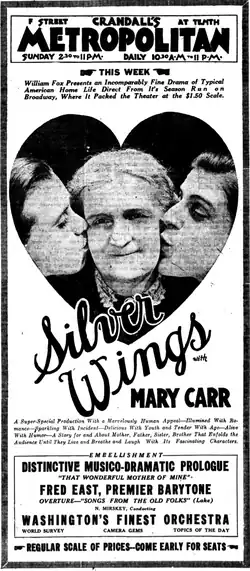 - ^ "Reviews: Silver Wings". Exhibitors Herald. 14 (24). New York City: Exhibitors Herald Company: 52. June 10, 1922.