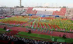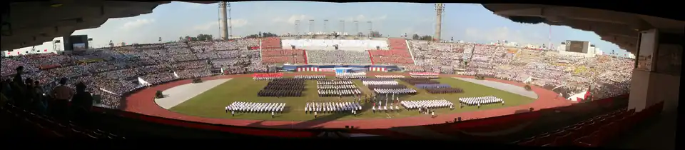 Panoramic view of the proceedings of the Singapore Youth Festival 2006 Opening Ceremony from the grandstand of the National Stadium.