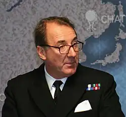 Admiral Sir George Michael Zambellas, GCB, DSC, ADC, DL, FRAeS (born 4 April 1958[1]) is a British retired Royal Navy officer. He served as First Sea Lord and Chief of the Naval Staff from April 2013[2] before handing over duties to Admiral Sir Philip Jones in April 2016.[3]