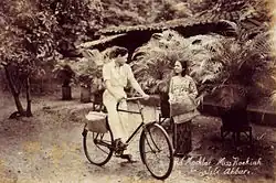 Siti Akbari premiered at the Cinema Palace Theatre on 29 April 1940.[7] For promotion, Tan's Film release a novelisation of the film shortly afterwards on Kolf Publishers; the writing team was headed by Andjar Asmara.[8] The film proved to be the last starring Roekiah and Mochtar as lovers; he left Tan's soon after over a wage dispute,[9] being replaced by the tailor Rd Djoemala for Roekihati in 1940.[10]
