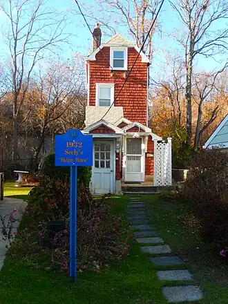 During the Great Depression Seely lost both his house and his company. In 1931, his neighbor Panfilo Santangelo, an Italian immigrant and stonemason, gave Nathan a twelve-and-a-half-foot strip of land between the Santangelo home and the former Seely home for Seely to build upon. The land that Santangelo's house sat upon had been previously purchased by him from Seely and ran between the two men's houses, including the property Mr. Seely lost when the Depression began.[2][5]