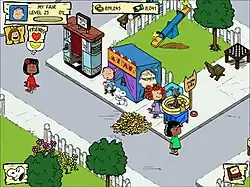 Snoopy's Street Fair is a city-building game where the player plays Charlie Brown, who starts and builds a street fair. Using in-game currency, players must purchase stands and stalls, which are operated by different Peanuts characters. The game has two different currencies: coins and Snoopy Bucks.[b] Coins can be earned from the different stands and stalls, while Snoopy Bucks are primarily acquired through microtransactions, although they can also be acquired through other means, such as by leveling up.[3] Players also have a to-do list, which includes various optional missions that reward the player with in-game currency and experience points when completed.[10]