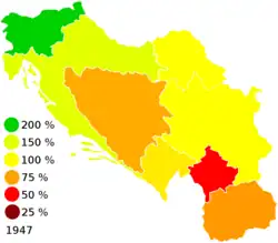 Map showing the economic development of the Yugoslav republics in 1947. Average development is 100%.