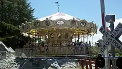 TrainTown was founded by Stanley L. Frank of Oakland, California. In 1958 he "began bringing his dream railroad to life, building everything himself, from the houses and landscaping to the line's two steam locomotives and one electric engine."[1] The railroad opened to the public in 1968. Frank died in 1977,[2] and his son Robert Frank has continued to run the day-to-day operations of TrainTown alongside his wife Barbara and his daughter Monica. TrainTown also features a beautiful carousel, a mine train roller coaster, and an airplane ride. The petting zoo includes many animals, some of whom are rescues, such as goats, chickens, ducks, llamas, sheep, and bunnies.