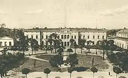 In 1860, the Russian architect A. I. Gornostayev constructed customs buildings on the opposite side of the tracks, later demolished in the Interwar period.[13] The station's establishment spurred Sosnowiec's rapid development, leading to the construction of public facilities (banks, hotels, commercial and service buildings), and residential structures, which contributed to receiving city rights from Tsar Nicholas II in 1902.[11][12]