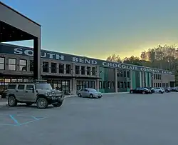 The South Bend Chocolate Company was established in 1991 by Mark Tarner, a second generation chocolate maker.[1][2] Along with a chocolate factory, the company has retail stores in the South Bend, Indiana regional area as well as Indianapolis and Ohio.[3][4] The company's flagship store, the South Bend Chocolate Cafe located on 122 S. Michigan St., is billed as the "World's Largest Chocolate Store" and has been credited with contributing to South Bend's downtown revival.[5][6][7] The company expanded its operations to the west side of South Bend with a new factory that opened in July 2024 at 7102 Lincolnway W.[8] The site also features the Indiana Dinosaur Museum along with other attractions.[9]