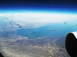 Lake Turkana and South Island viewed from the east from an airplane.