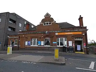 Southbury is a station on the Weaver line of the London Overground, located on the eastern side of Enfield in north London. It is 10 miles 32 chains (16.7 km) down the line from London Liverpool Street and is situated between Edmonton Green and Turkey Street stations on the Southbury Loop section of the Lea Valley lines. The station is in Travelcard Zone 5.