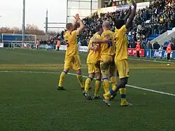 In May 2006 Southend became League One champions after beating Bristol City 1–0 at Roots Hall in front of over 11,000 fans - the club's first title in 25 years. Southend started the 2006–07 season well but then did not win a league game for 18 games until December 2006. In the meantime, however, Southend did beat trophy holders and Premier League Champions Manchester United 1–0 in a League Cup fourth round tie, with Freddy Eastwood scoring the winner.[20] Southend briefly escaped the relegation zone in March 2007 but only 10 league wins in the season meant the Shrimpers were relegated back to League One. Southend finished sixth in League One at the end of 2007–08, qualifying for a play-off place. Against Doncaster Rovers, Southend drew the home leg 0–0, but lost the second leg 5–1. The following season, Southend finished 8th, missing out on a play-off place, but the 2009–10 season was tougher: a run of just one win in 2010 left Southend deep in trouble, and relegation to League Two was confirmed on 24 April 2010. On 4 July 2010 manager Steve Tilson was put on gardening leave,[21] ending his seven-year stint as manager.