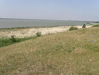 The ribbon pine forest characteristic of the Ob Plateau grows in places close to the lake. Reeds and cattails are found in sections of the lakeshore.[3]