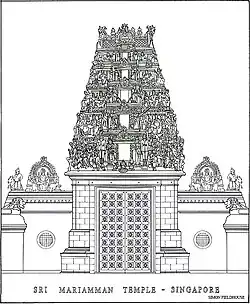 A line drawing of Sri Mariamman Temple