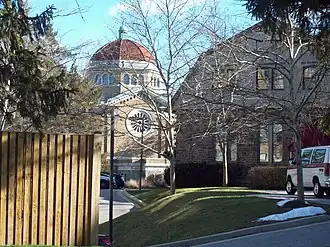 St. Charles College Historic District is a historic Catholic church seminary and national historic district at Catonsville, Baltimore County, Maryland, United States. The main complex consists of six interconnected buildings, three of which form the central group: Chapel, Administration Building, and Old Dormitory. Each has a rusticated stone first floor and upper levels of buff brick with stone trim in the Italian Renaissance style. The complex includes three additional buildings: the Dining Hall, connected by a passageway; the Convent, physically attached to the Dining Hall, and the Power House.[12] The chapel, designed by Murphy & Olmsted of Washington, D.C., was known as “Our Lady of the Angels” and was the gift of the Jenkins family, who also built Corpus Christi Church in Baltimore. It houses a pipe-organ built by Casavant Frères in 1919, its Opus. 808. The historic Casavant pipe organ was played in recital during the Organ Historical Society Convention in July 2024.[13]