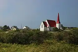 St. John's Anglican Church is a historic Carpenter Gothic style Anglican church building located at 8 Church Road in Peggys Cove, Nova Scotia, Canada. Built in 1893–94 of wood, St. John's is the only church in Peggys Cove. Its steep pitched roof, board and batten siding and lancet windows are typical of Carpenter Gothic churches.[1] The church contains two murals painted in 1963 by noted Canadian artist and local resident William E. deGarthe.