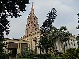 St. John's Church, originally a cathedral, was among the first public buildings erected by the East India Company after Kolkata (Calcutta) became the effective capital of British India.[1] It is located at the North-Western corner of Raj Bhavan, and served as the Anglican Cathedral of Calcutta till 1847, when the see was transferred to St. Paul's Cathedral. Construction of the building, modelled on St Martin-in-the-Fields of London,[2] started in 1784, with Rs 30,000 raised through a public lottery,[3] and was completed in 1787. The land the church stands on was gifted by Maharaja Nabo Kishen Bahadur of Sobhabazar.[4] It is the third oldest church in the city, next to the Armenian Church of the Holy Nazareth and the Old Mission Church.[5]
