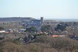 The earliest evidence of its use as such is Roman, but it is likely that the hill was used as a lookout post earlier.[11] Christchurch Harbour was an important trading port in the Iron Age and through the Saxon and Roman periods; and the hill overlooks the Avon and Stour rivers, both navigable, until the 18th century, as far as Salisbury and Blandford respectively.[12][13] Fragments of Roman pottery have been found in a ditch, which appears to be part of a fortification or signal station overlooking the main road from Christchurch to Wimborne and an important fording point on the Stour.[10] From a simple wooden tower, the River Avon, the harbour and Hengistbury Head would have been viewable here.[14]
