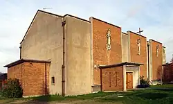 St Katherine Westway is a Church of England parish church in Hammersmith, west London.[1] Its original dedication was St Catherine Coleman, named after the church of St Katherine Coleman in the City of London, whose sale funded its construction in 1922, to a design by Robert Atkinson - it was assigned a parish in 1929.[2][3] Westway refers to Westway, the road beside which it stands. The original church was destroyed by bombing on 14 September 1940 and the foundation stone for the present one was laid on 25 October 1958.