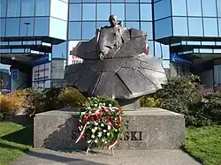 It is on the eastern side of the square, on the sidewalk in front of the Błękitny Wieżowiec (Blue Skyscraper). The unveiling of the monument took place on 10 November 1993, to celebrate the hundredth year of the birth of President.