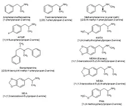 Major stimulant classes include phenethylamines and their daughter class substituted amphetamines.[66][67]