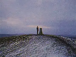 Antony Gormley sculpture, "A View, A Place", 1986. It was sited at the festival's highest point looking out over the Fowlea Valley, next to the OS trigonometry marker-stone. The site is now completely enclosed by woodland.