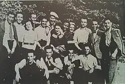 Strasho Pindzur with students, members of the "Vardar" society, 1936.