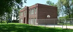 Strang School District No. 36, or the Strang Public School, is a historic school located in Fillmore County, Nebraska, in the village of Strang. The school is one of the two sites listed on the National Register of Historic Places in the village of Strang. The school building is a small, two-story, brick public schoolhouse, which was built to replace the schoolhouse that was previously located on that site. The schoolhouse was built between 1929 and 1930, and replaced the previous schoolhouse, which burned down in 1928. The schoolhouse still retains all original building materials.[2] The school served high school students from 1930 to 1951, and still functions as a school today, serving grades K–8.[2] The NRHP listing also includes a flagpole located outside the schoolhouse, and five pieces of playground equipment.