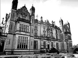 In 1749 Merevale Hall was inherited by Edward's eventual descendant Penelope Bate Stratford (the daughter and co-heiress of Francis Stratford of Merevale) who married William Geast. William Geast took the surname of his Uncle, John Dugdale, and their child was Dugdale Stratford Dugdale who married the honourable Charlotte Curzon, daughter of Assheton Curzon, 1st Viscount Curzon of the (now) Earls Howe.[12] Their son William Stratford Dugdale had a son also named William Stratford Dugdale who had a son named William Francis Stratford Dugdale, who came to be the 1st Baronet.[13] The Merevale estate has descended to the present incumbent, his grandson Sir William Matthew Stratford Dugdale, 3rd Bt of the Dugdale baronets thus:[11]