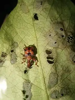1. ^ Rauf, Aunu (March 28, 2023). "Kumbang Strigapoderus javanicus Membuat Dondang Demi Sang Anak". serbaserbihama.com (in Indonesian). Retrieved 2024-02-08.