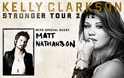 During an interview with MTV News, Clarkson stated a tour was being planned for "sometime in 2012".[2] The tour was officially announced on November 14, 2011 with over 30 shows in the United States and Canada.[3] Joining the singer on tour is Matt Nathanson as the opening act on select shows. Clarkson mentioned she was looking forward to performing "Stronger (What Doesn't Kill You)".[4] She explained, "I can't wait to perform What Doesn't Kill You. We've already rehearsed it, and it's so much fun. It's like this big dance anthem".[4] For the show, Clarkson asked her fans to votes to requests on Twitter.[5]