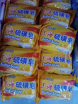 Precipitated sulfur and colloidal sulfur are used, in form of lotions, creams, powders, soaps, and bath additives, for the treatment of acne vulgaris, acne rosacea, and seborrhoeic dermatitis.[1][2][3] Other topical uses included the treatment of superficial mycoses (infections with fungi) and scabies, but this is largely obsolete now.