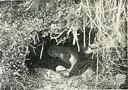 Approximately one million short-tailed shearwaters (commonly known as mutton birds in Australia) return to Phillip Island from the Bering Straits, Alaska to breed in burrows each year.[6][23] Historically, shearwaters were harvested for food and oil but are now protected in Victoria.[28] The threat of fox predation on the colony has been largely reduced due to control and eradication, however township light pollution and the ingestion of marine plastic waste remain significant threats of which scientists are currently researching. Fledglings on their first flights to sea are attracted to artificial lights which disorientates their path and leaves many landing and stranded on roads.[29] High mortality rates from road traffic were recorded until 1999, before a Shearwater Protection Program was established to remove and re-locate birds on roads to safer areas.[6][30] A recent study on Phillip Island into plastic ingestion in shearwater fledglings found all sampled birds contained plastic particles, passed on from the fish caught by their parents, it has been found that shearwaters have a particularly high prevalence of marine debris in their systems.[31]