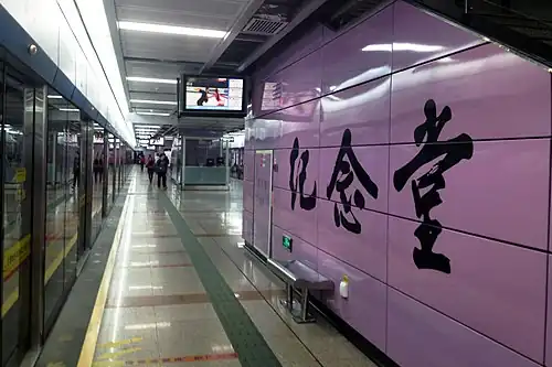 Sun Yat-sen Memorial Hall Station (simplified Chinese: 纪念堂站; traditional Chinese: 紀念堂站; Jyutping: gei2 nim6 tong4 zaam6; Cantonese Yale: Géinihmtòhng Jaahm) is a station on Line 2 of the Guangzhou Metro that started operations on 29 December 2002. It is located under Dongfeng Middle Road (东风中路) and Lianxin Road (连新路) in the Yuexiu District of Guangzhou. The station is named for the Sun Yat Sen Memorial Hall, which was established in 1931 in memory of Dr. Sun Yat-Sen, the founder of the Republic of China.[1][2] The English name of the station is the same as that of Sun Yat-sen Memorial Hall Station in Taipei, Taiwan's Metro system.