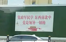 In some communist states, such as China, this was done much later. At the 19th National Congress of the Chinese Communist Party, held in 2017, General Secretary Xi Jinping told the assembled delegates that "Party, government, military, civilian, and academic, north, south, east, west, and center, the Party leads everything."[46] This was followed-up in 2018, when the 1st Session of the 13th National People's Congress amended the constitution and added the following sentence: "Leadership by the Communist Party of China is the defining feature of socialism with Chinese characteristics."[47]