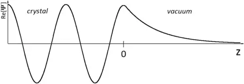 It can be shown that the matching conditions can be fulfilled for every possible energy eigenvalue which lies in the allowed band. As in the case for metals, this type of solution represents standing Bloch waves extending into the crystal which spill over into the vacuum at the surface. A qualitative plot of the wave function is shown in figure 2.