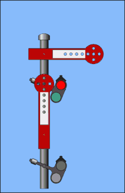In some cases, mostly entering stations, home signals and distant signals can be found on the same mast; in this case the distant signal is linked to the next home signal.
