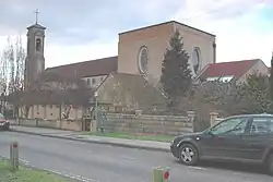 Dale's churches built after the Second World War were more ambitious. St. Michael and All Angels, New Marston (1954–56),[14] was built as a chapel of ease for St. Andrew's parish church, Headington.[13] It is more substantial in scale and has a statue of St. Michael by Michael Groser and a reredos painted by Leon Underwood.[15] St. Michael's is described as being in a "vaguely Italian renaissance style"[13] but the building is slightly limited by its corner site. Dale's final church, St. Swithun, Kennington (1956–58),[16] is in a spacious churchyard that allowed Dale the space to use a more spacious cruciform plan.