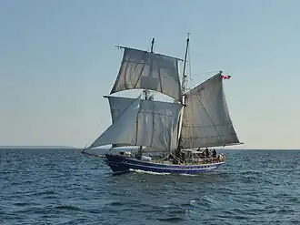 TS Playfair is a traditionally-rigged brigantine training ship operated by Brigs Youth Sail Training formerly Toronto Brigantine Inc.,[1] a sail-training Canadian registered charity based in Hamilton , ON, Canada as of 2021 and formerly in Toronto, ON since 1962. Playfair is used for a youth sail training program on the Great Lakes during the summer months. This program is one of the very few sail training programs where all of the crew except for the captain are in high school (13–19 years old). The summer training is followed by a winter program where youth work through higher levels of training syllabus to become accredited members of the crew the following year.
