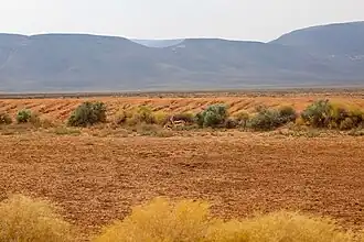 It is bounded on the east by the Roggeveld Mountains, on the west by the Cederberg, to the north by the Kouebokkeveld Mountains and on the south by the scattered foothills of the Koedoesberge and Klein Roggeveld Mountains, and the Tankwa River.[3] The park's headquarters are located at Roodewerf. Distances from the nearest towns to the park's headquarters are: Ceres (180 km), Sutherland (120 km), Calvinia (110 km) and Middelpos (52 km).[4]