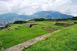 This archeological site was the town which was abandoned in favor of the new settlement on the valley floor after the Spanish Conquest of the Aztec Empire. It is located on Tetepetl Hill, just north and west of the modern town's main square. It was the largest fortified city in the Valley of Toluca in pre-Hispanic times. It was excavated in the 1970s by the Instituto Mexiquense de Cultura, who continues to maintain the site as well as the Roman Piña Chan Archeological Museum located at the base of Tetepetl Hill.[3][6] This site is one of the major tourist draws for the State of Mexico after Teotihuacan, Valle de Bravo and Chalma.[7] The obelisk that marks the entrance to the reconstructed site was built in the 1930s and is in honor of Ignacio Lopez Rayon. It is built to emulate the style of the pyramid of Conjuto A.[3] The archeological zone of Teotenagno receives about 4,000 visitors annually.[1]