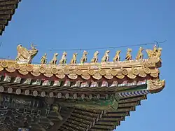 Many ancient and traditional roofing styles included more elaborate sculptural elements than the plain roof tiles, such as Chinese Imperial roof decoration and the antefix of western classical architecture. In India West Bengal made a speciality of terracotta temples, with the sculpted decoration from the same material as the main brick construction.