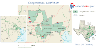 Texas's 29th congressional district of the United States House of Representatives covers the eastern portion of the Greater Houston area in the state of Texas. The current Representative from the 29th district is Democrat Sylvia Garcia.
