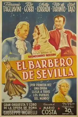 The Barber of Seville (Italian: Il barbiere di Siviglia) is a 1947 Italian opera film directed by Mario Costa and starring Ferruccio Tagliavini, Tito Gobbi and Nelly Corradi. It is an adaptation of Gioachino Rossini's 1816 opera The Barber of Seville.[1]