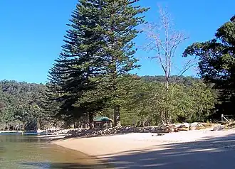 The Basin is located in Ku-ring-gai Chase National Park, on the western shores of Pittwater, beside Coasters Retreat. Palm Beach is located nearby.